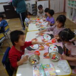 今日は、年少うさぎ組さんの保育参観でした。「大きなケーキを作ろう」で、4つのコーナーに分かれて親子で「ドーナッ… 続きを読む: 今日は、うさぎ組さんの保育参観でした。