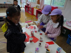 今日は、今年5回目の自由保育の日でした。外は気温が下がって来たので室内で遊んでいる子も多かったです。家をつくっている子、カフェを開いた子、くじ引きをしている子、風船で遊んでいる子、探検グッツを作ってグラウンドに探検に出掛 […]