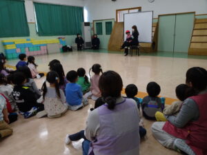 今日は、交通安全教室が行われました。カンガルーさんも参加して、お遊戯室で行いました。最初は腹話術のお人形のしょうちゃんが出て来て車に乗る時に「チャイルドシート」や「ジュニアシート」に座ることを約束しました。また、「道路で […]