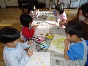 「雪遊びができないね…、」と子ども達。「ワラジムシの家」を作って廊下に置き、「ワラジムシをみつけたら、おしえてください。」の張り紙を貼ったり…。子どもの興味・関心は尽きないようです。 今日はきりん組さんは「福笑い」を作っ […]