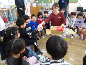 今日きりん組さんは、去年作って1年間しまってあったタイムカプセル!を開けました。みんな「何を入れたか忘れちゃった~!!」とドキドキしながら開けました。自分の箱を開けると…、ぱんださんで書いたカード、自分で作った鉛筆立てや […]