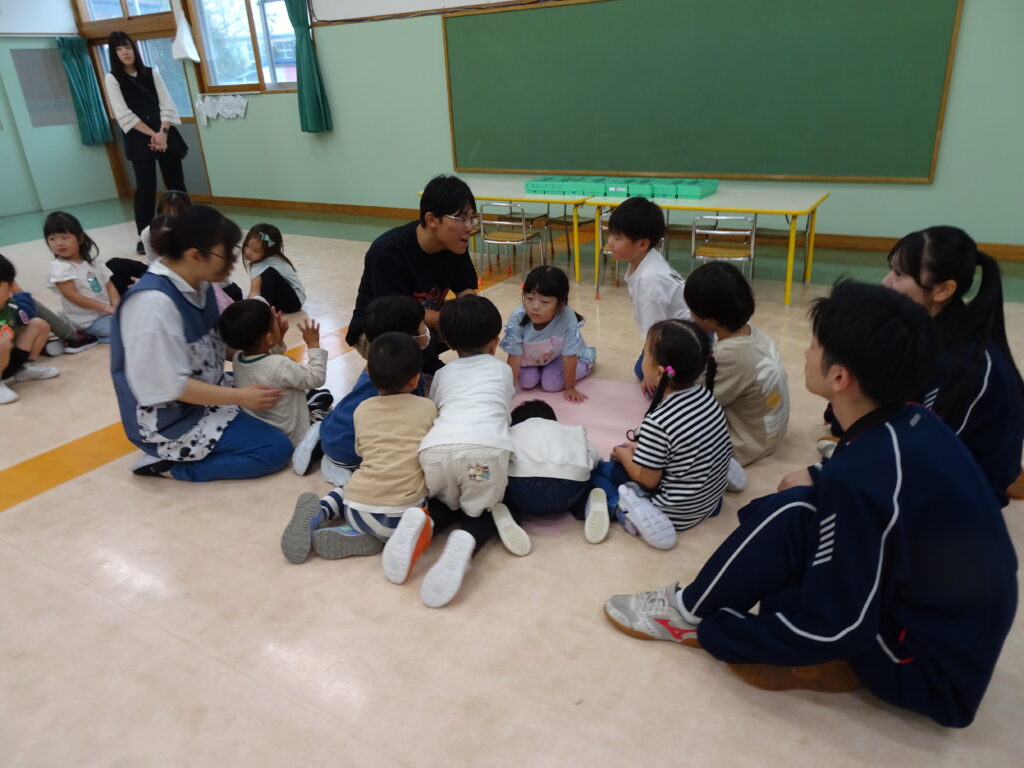 今日は、北陽高校の学生さんが雨の中幼稚園に遊びに来てくれました。