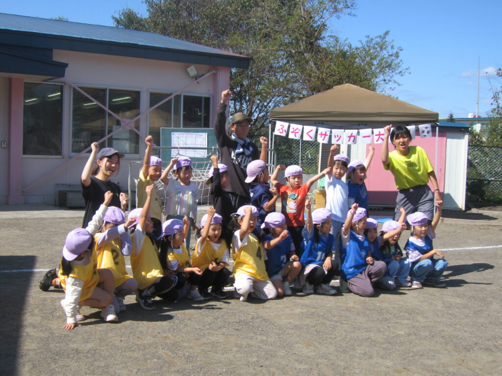 よその園に行って他園のお友達とサッカーの試合をして、一緒に遊んで交流できなかったことは残念でしたが、園庭でトーナメント戦をして先生チームとの対戦も楽しんだ子ども達でした。