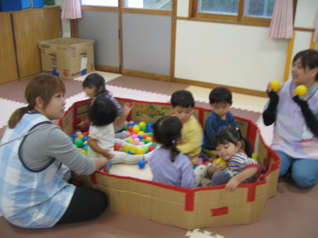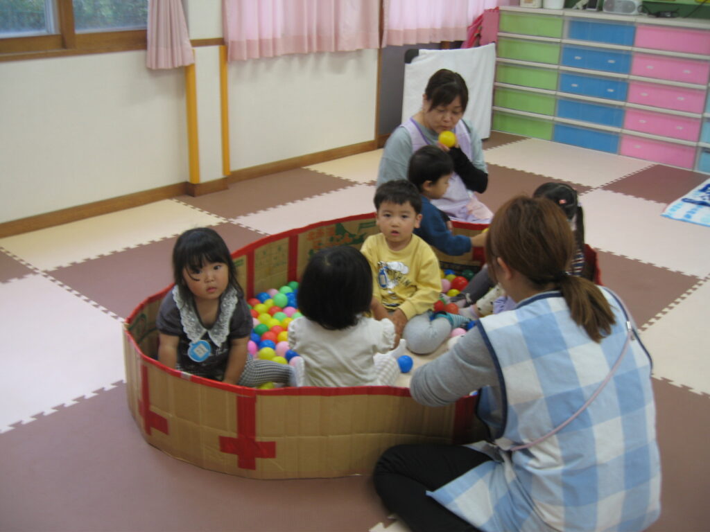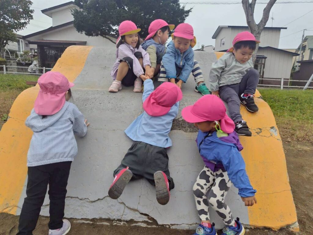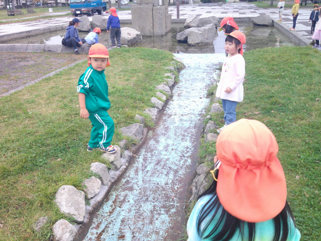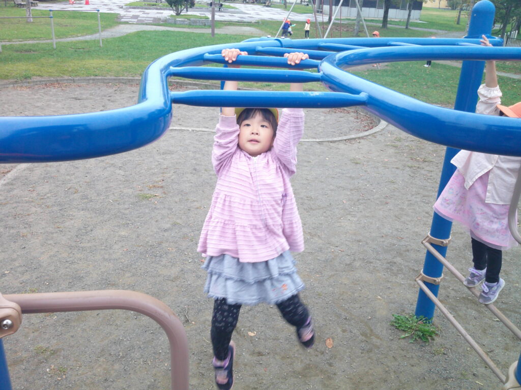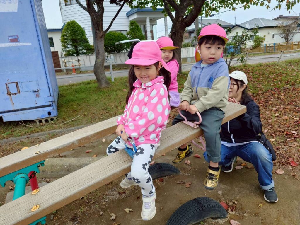 ぱんだ組さんは、園バスで睦公園に出掛けました。うさぎ組さんも緑ケ岡1号公園までお散歩をして、帰りも頑張って歩いてきました。二クラスとも秋の公園で木の実や木の葉を拾ってたくさん遊具でも遊んで来ました。雨を心配しましたが、雨雲レーダーを確かめながら出かけました。カンガルークラブさんは、お部屋でボール遊びをしました。