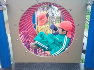 ぱんだ組さんは、園バスで睦公園に出掛けました。うさぎ組さんも緑ケ岡1号公園までお散歩をして、帰りも頑張って歩いてきました。二クラスとも秋の公園で木の実や木の葉を拾ってたくさん遊具でも遊んで来ました。雨を心配しましたが、雨雲レーダーを確かめながら出かけました。カンガルークラブさんは、お部屋でボール遊びをしました。
