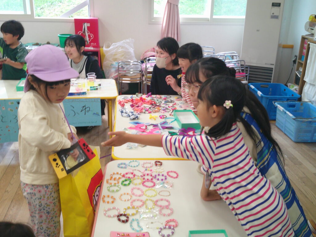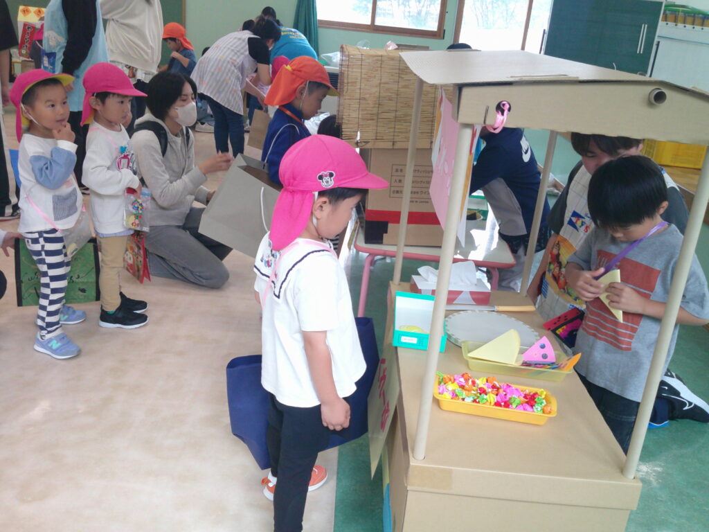 今日は子ども達が楽しみにしていたふぞくこども祭りの1日目で、子ども達は前後半に分かれて売り手と買い手の両方を経験しました。カンガルークラブさんと体験入園の参加者は、買い手で参加しました。