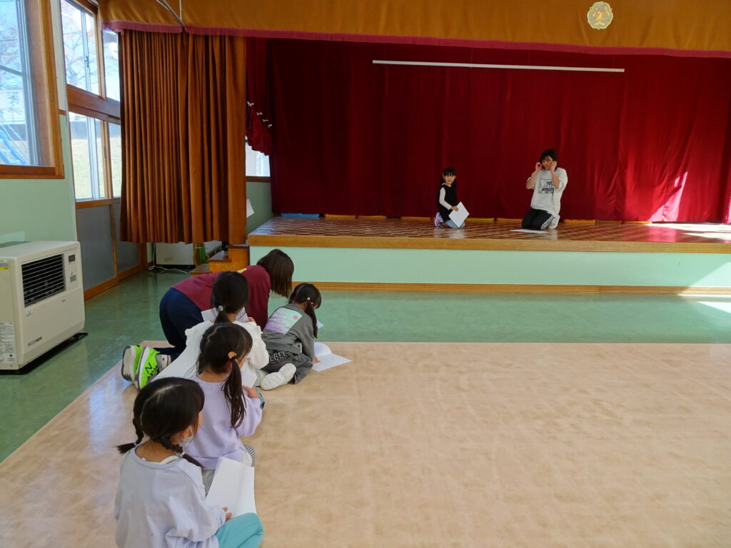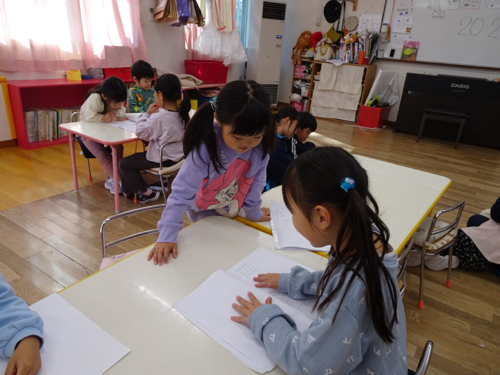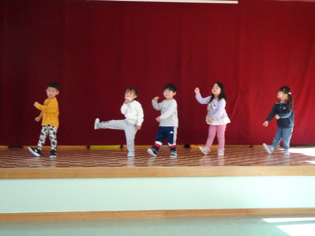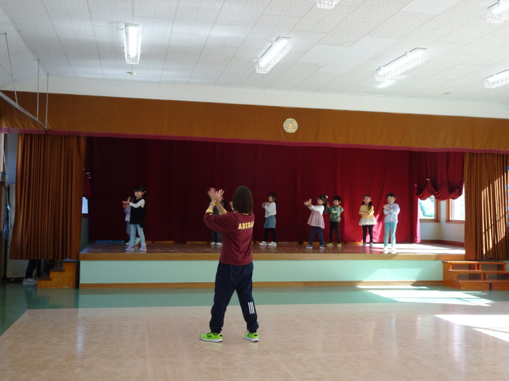 今日はきりん組さんも、ぱんだ組さんも、うさぎ組さんもお遊戯や出し物の練習を頑張っていました。ダンスを休み時間なども楽しんで踊る姿が見られるようになりました。きりん組さんは台本を皆で読みながら、劇の練習に取り組んでいました。