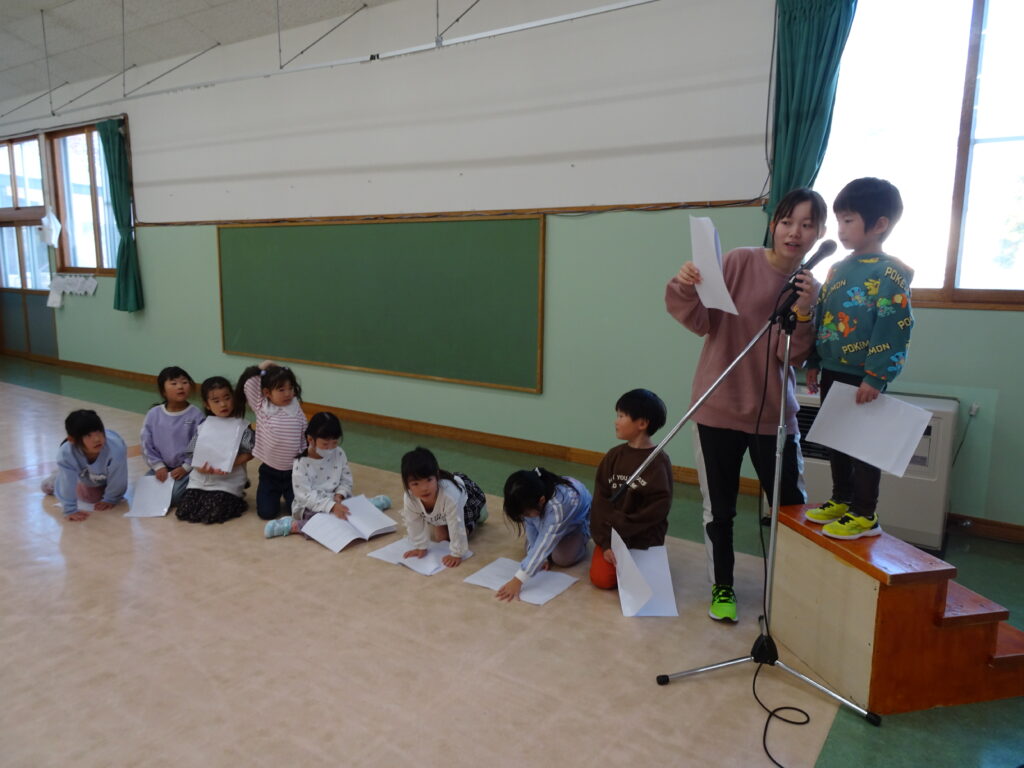 今日の朝は合同保育があって、私からは「秋のお話」と「縄跳び名人・達人」のお話をしました。冬に向かいますが風邪などひかずに元気に過ごして欲しいですね。