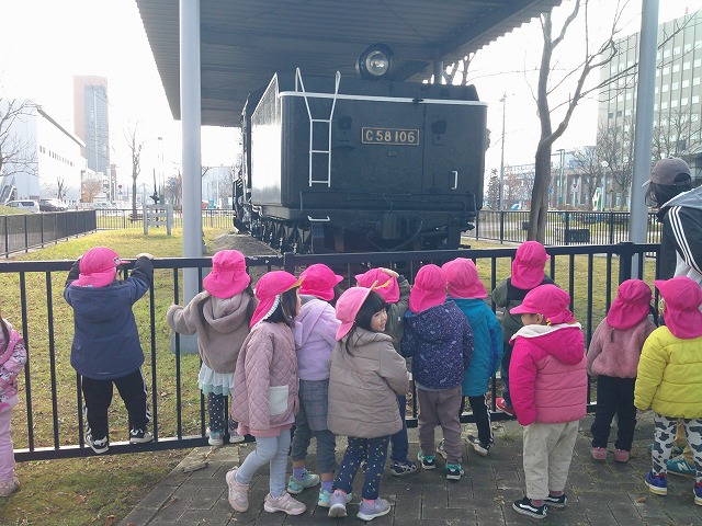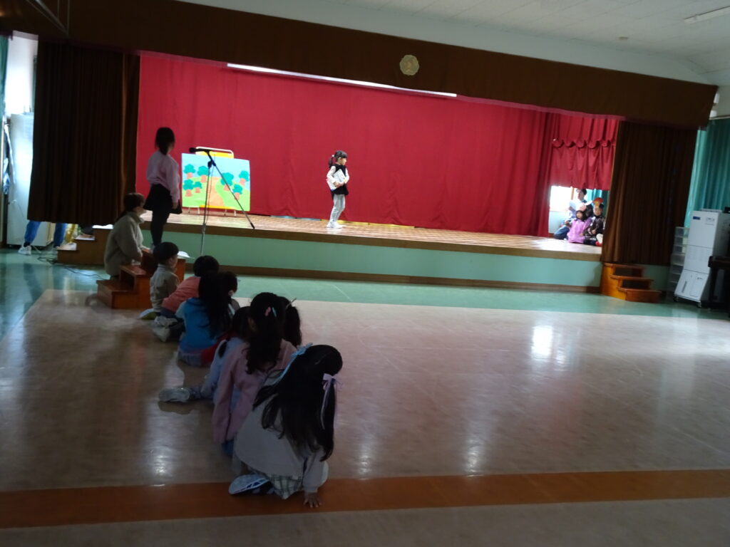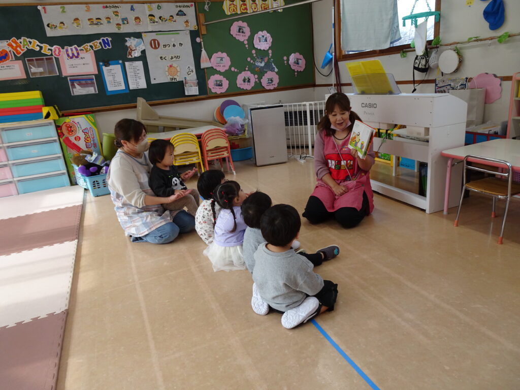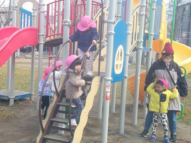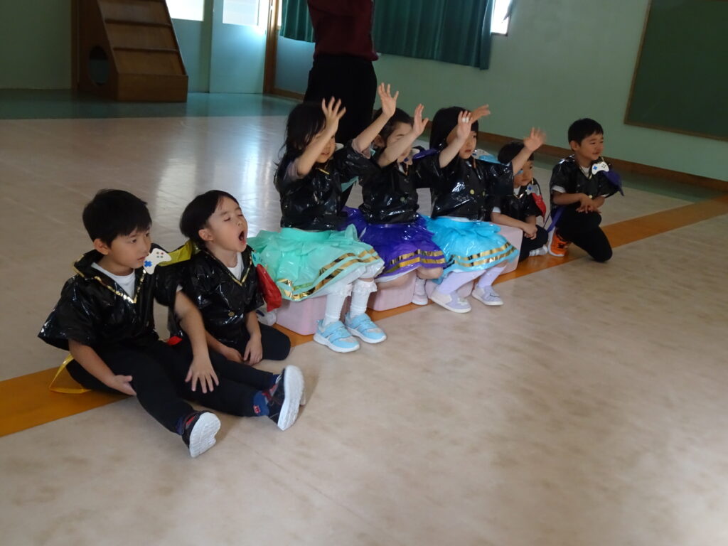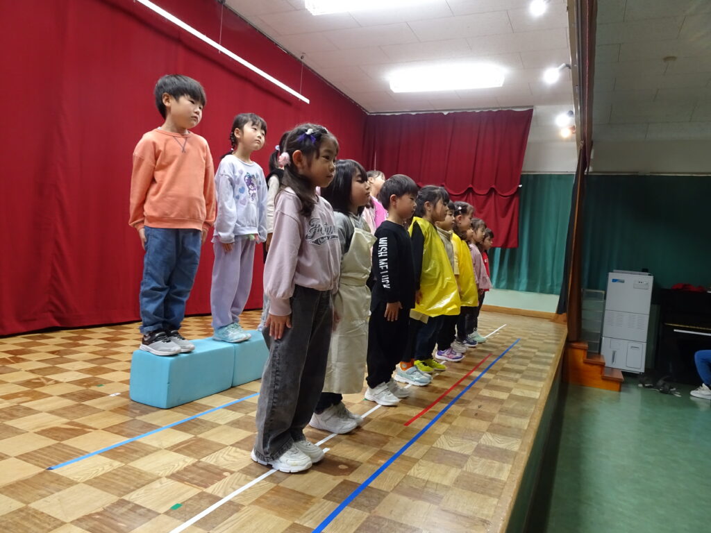 今日のきりん組さんは、お遊戯室で劇の練習をしていました。最後の挨拶まで頑張っていました。ぱんだ組さんはお遊戯の練習をしてから昨日作った「紙コップキャッチ」で遊びました。お友達のお遊戯を見ながら一緒に踊っているぱんださんの姿が、ふぞく幼稚園らしかったです。うさぎ組さんは幸町公園に遊びに行きました。寒いかしらと心配していましたが、「とっても暑かった!」「楽しかった!!」と帰ってきました。カンガルークラブさんは、お遊戯の練習をしてから、わらべ歌「むっくりクマさん」と「あぶくたった煮え立った」を楽しみました。「むっくりクマさん、むっくりクマさん、穴の中…。」本当に!クマさんには穴の中で静かに寝ていて欲しいですね…。(森)