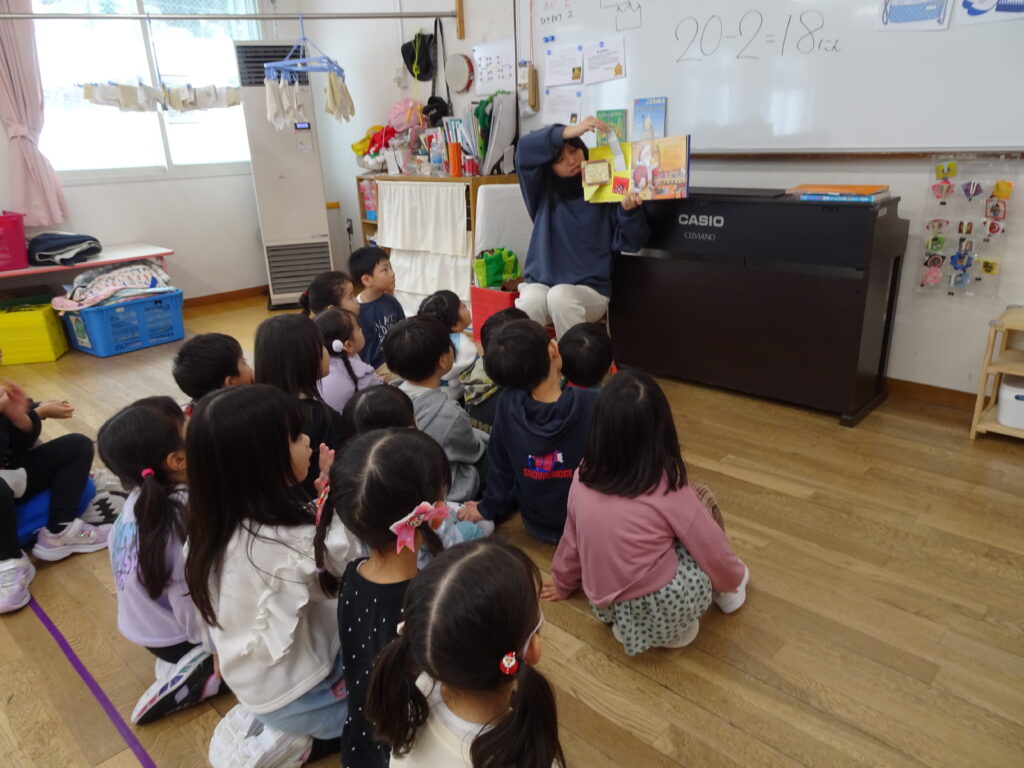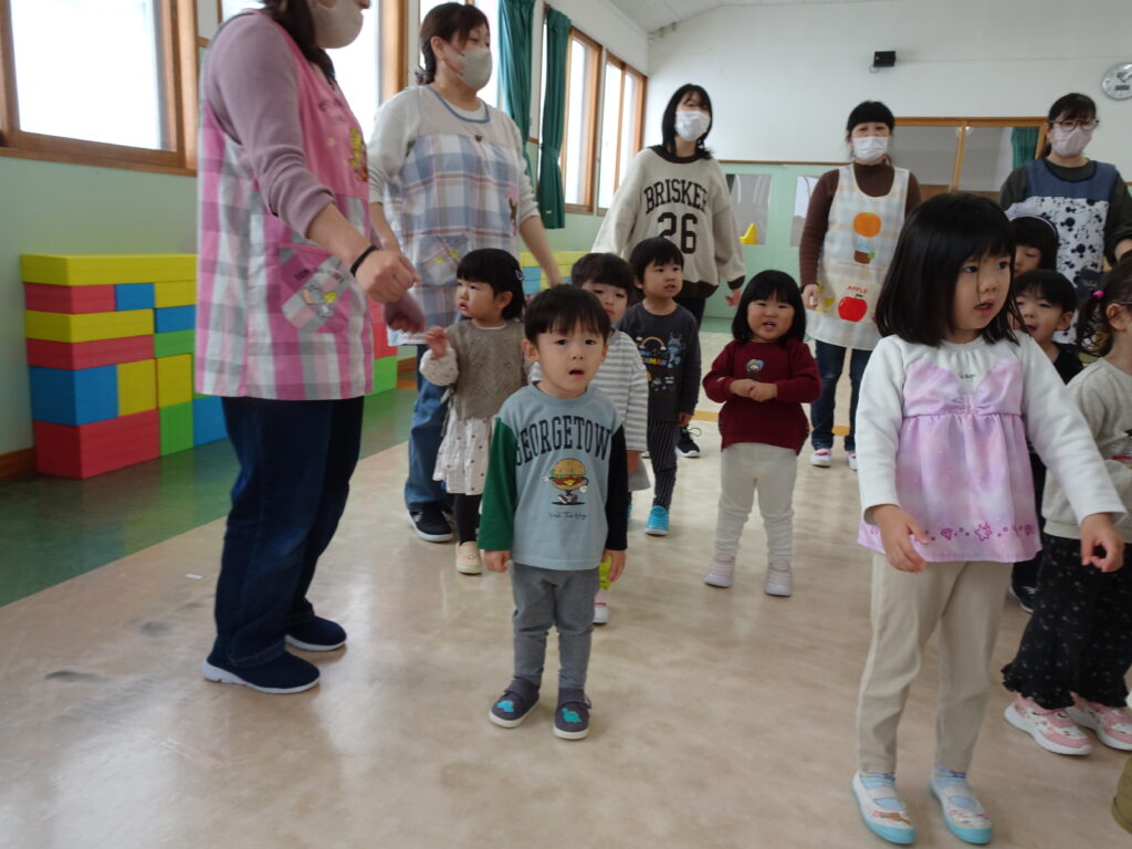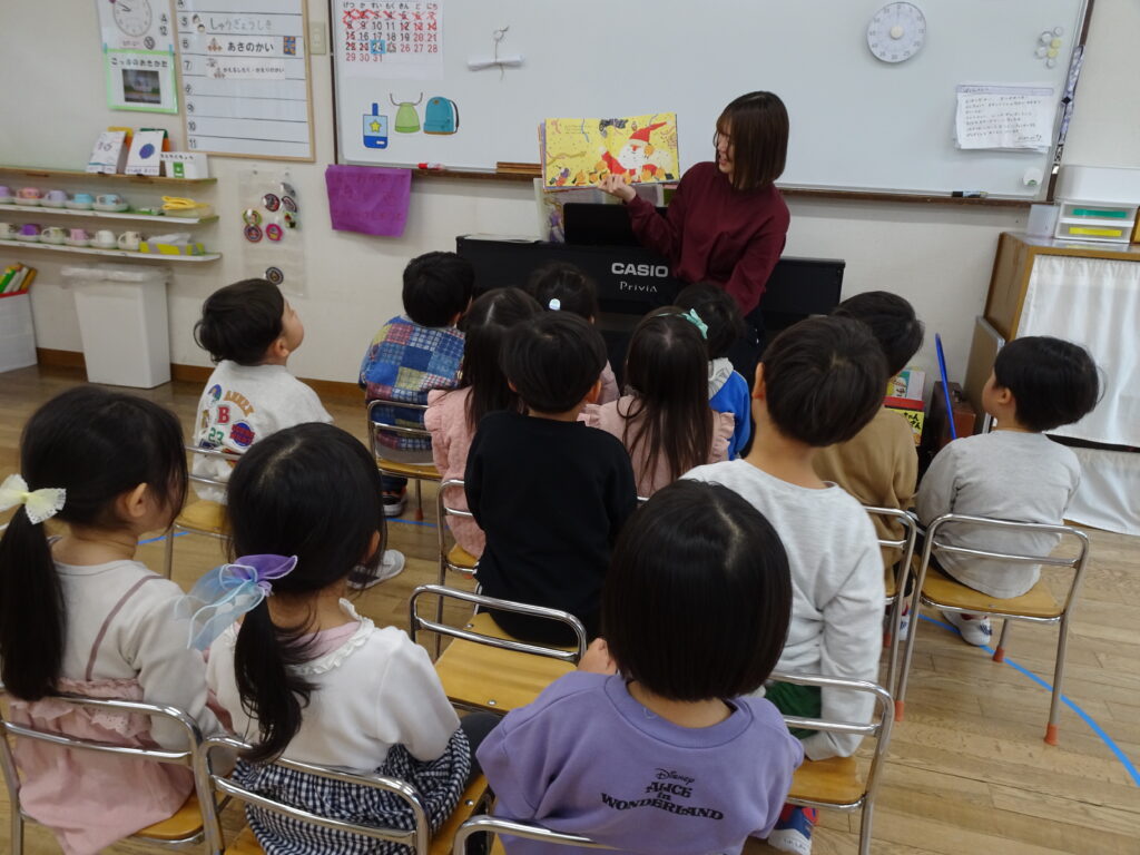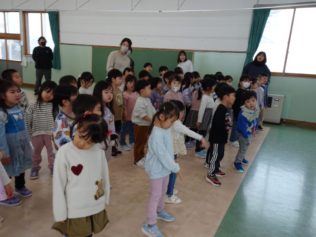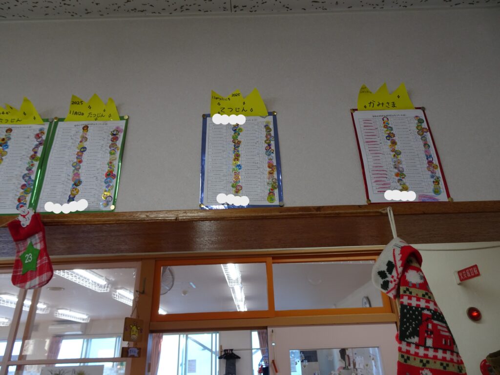 今日は12月24日、2学期の終業式でした。みんなでお遊戯室に集まって「あわてんぼうのサンタクロース」「お正月」「朝の歌」を歌いました。終業式のお話では、