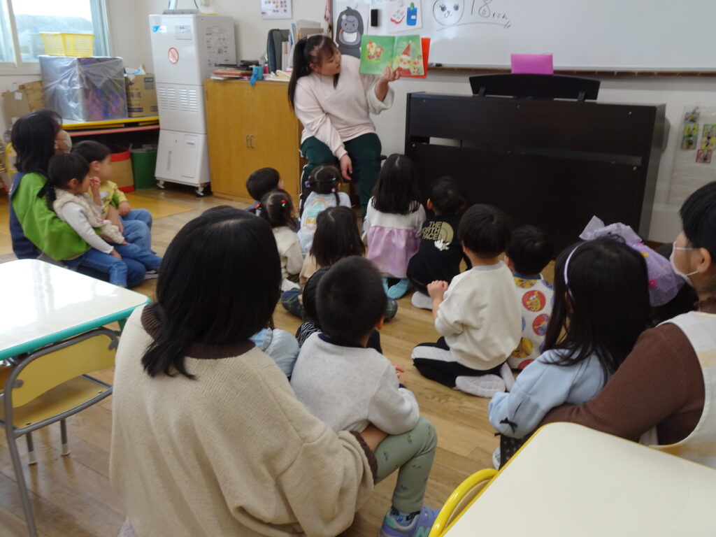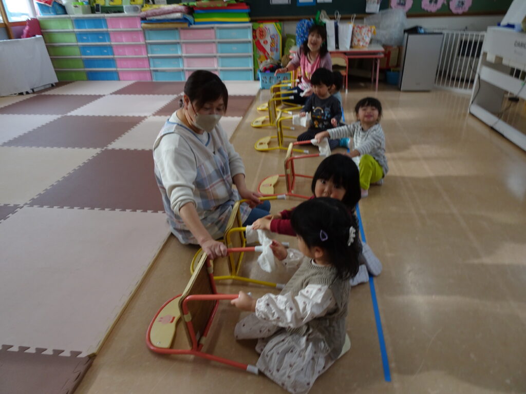 今日はクリスマスイブなので、どのクラスも読み聞かせには「サンタクロース」が出てきていました。カンガルーさんでは大掃除もしていました