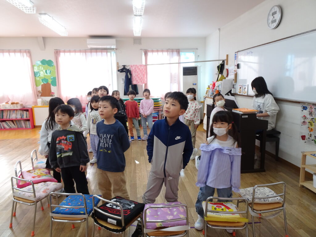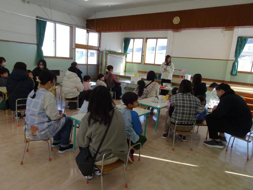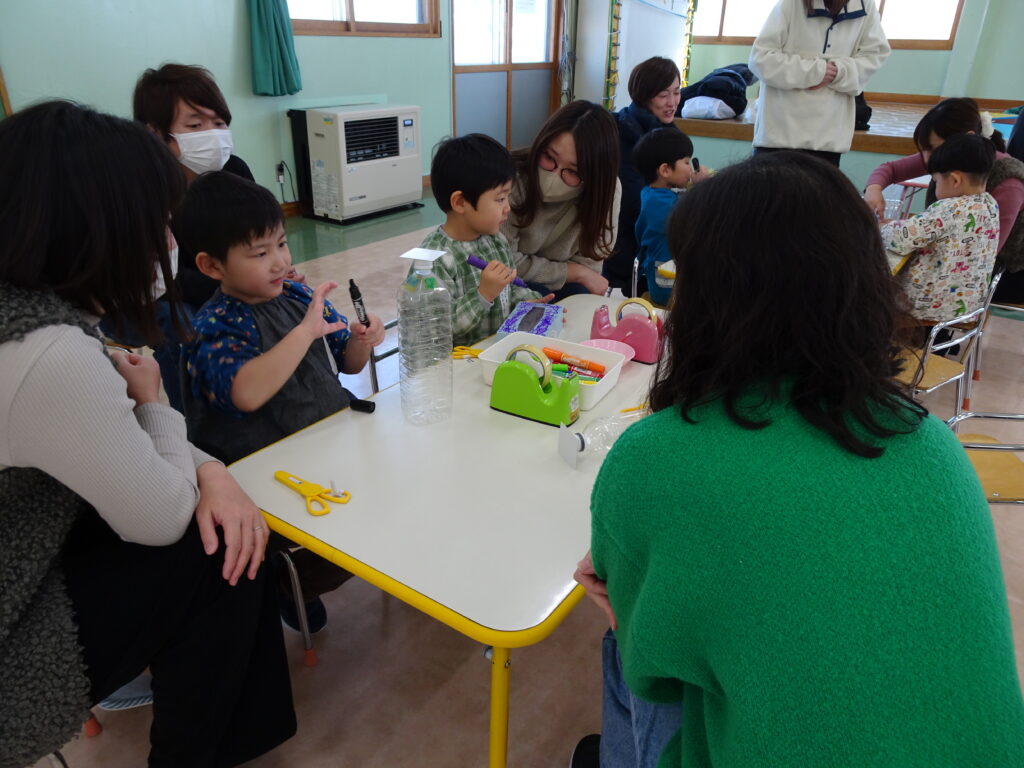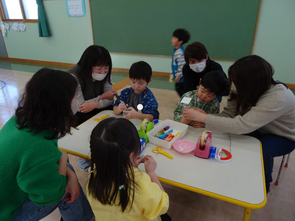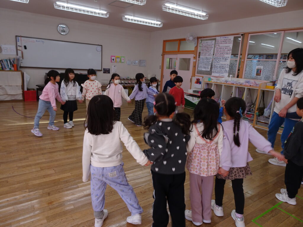 きりん組さんは卒園式の歌の練習をして、お部屋で伝承遊び「なべなべそこぬけ」「花いちもんめ」を楽しみました。うさぎ組さんは3色の「チョコレートづくり」を楽しみました。「間違えて食べないでね!!」という素敵なチョコレートができました。カンガルーさんはシールをペタペタ貼って「シール遊び」を楽しみました。