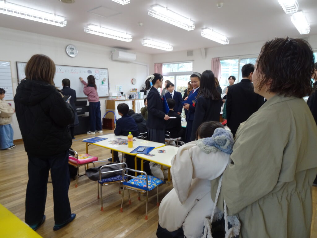 今日は小学校の卒業式で、卒園児たちが中学校の制服姿で幼稚園に来てくれました。幼稚園時代に作ったタイムカプセルを開けて、自分に書いたお手紙を受け取りました。皆、とっても大きくなりました。