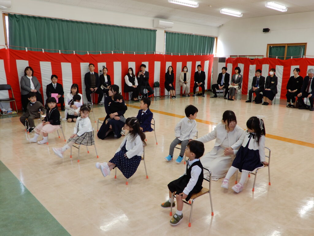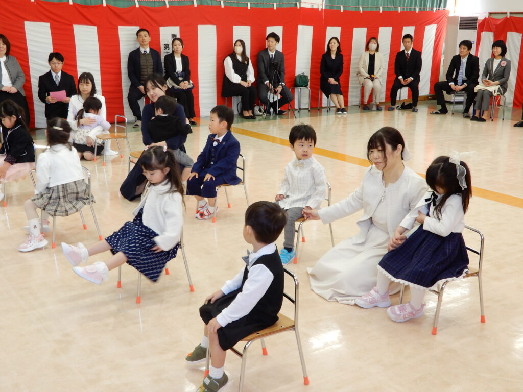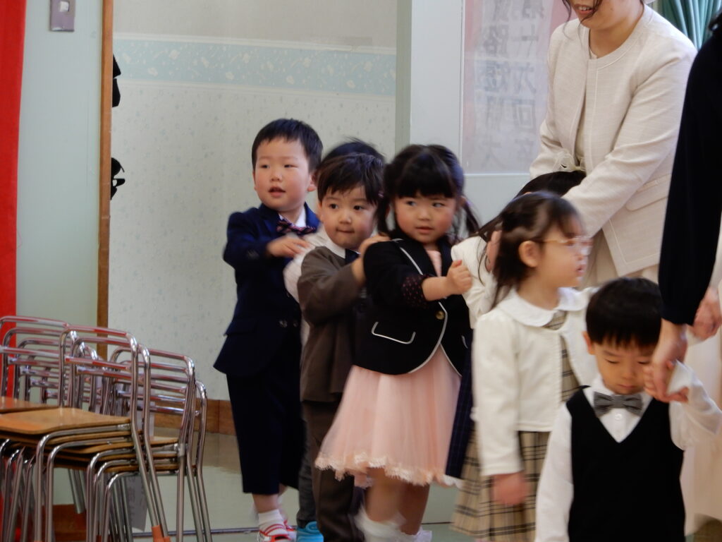 新入園児の表情は様々でこれからの園生活を楽しみにしている子や照れくさそうに笑う子もいれば、