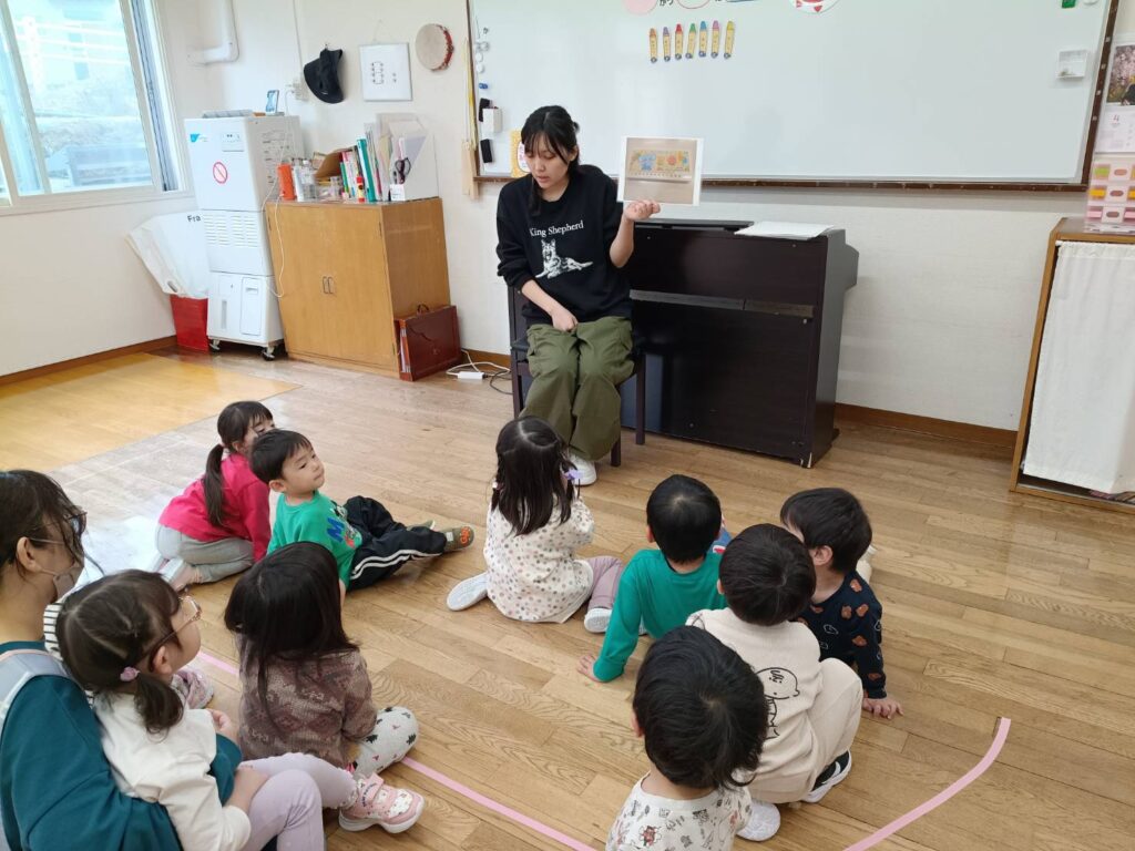 うさぎ組さんはクレヨンでバスやクマなどの塗り絵に色を塗りました。一生懸命色塗りをしている姿が可愛かったです。